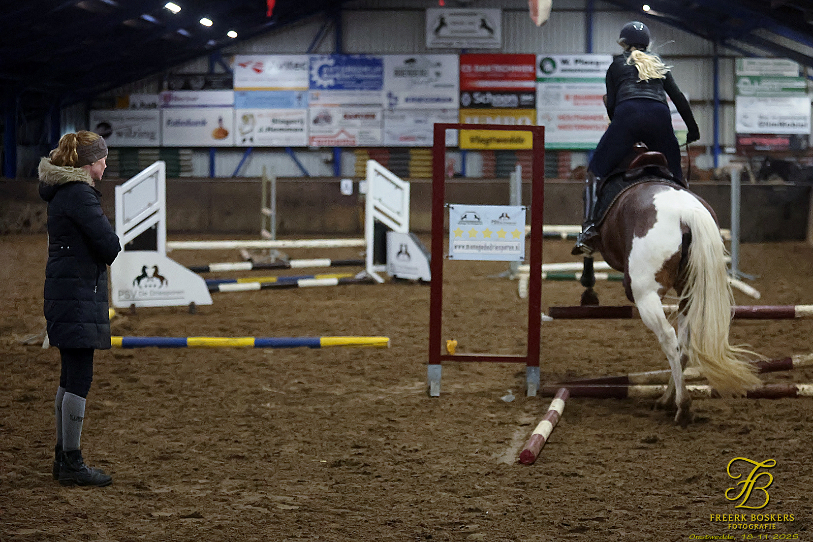 ONSTWEDDE – In de rijhal van Manege De Driesporen vond dinsdagavond 18 november opnieuw een succesvolle indoor springclinic plaats, georganiseerd door PSV De Driesporen. Onder leiding van instructrice Renate Beuving werkten ruiters in drie groepen aan hun springtechniek, met veel aandacht voor ritme, balans en een rustige aanpak richting de hindernissen.